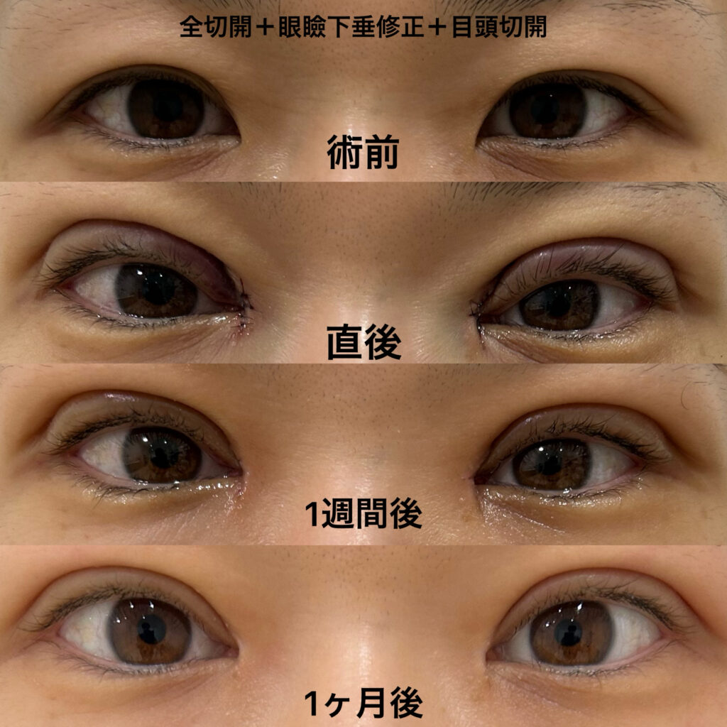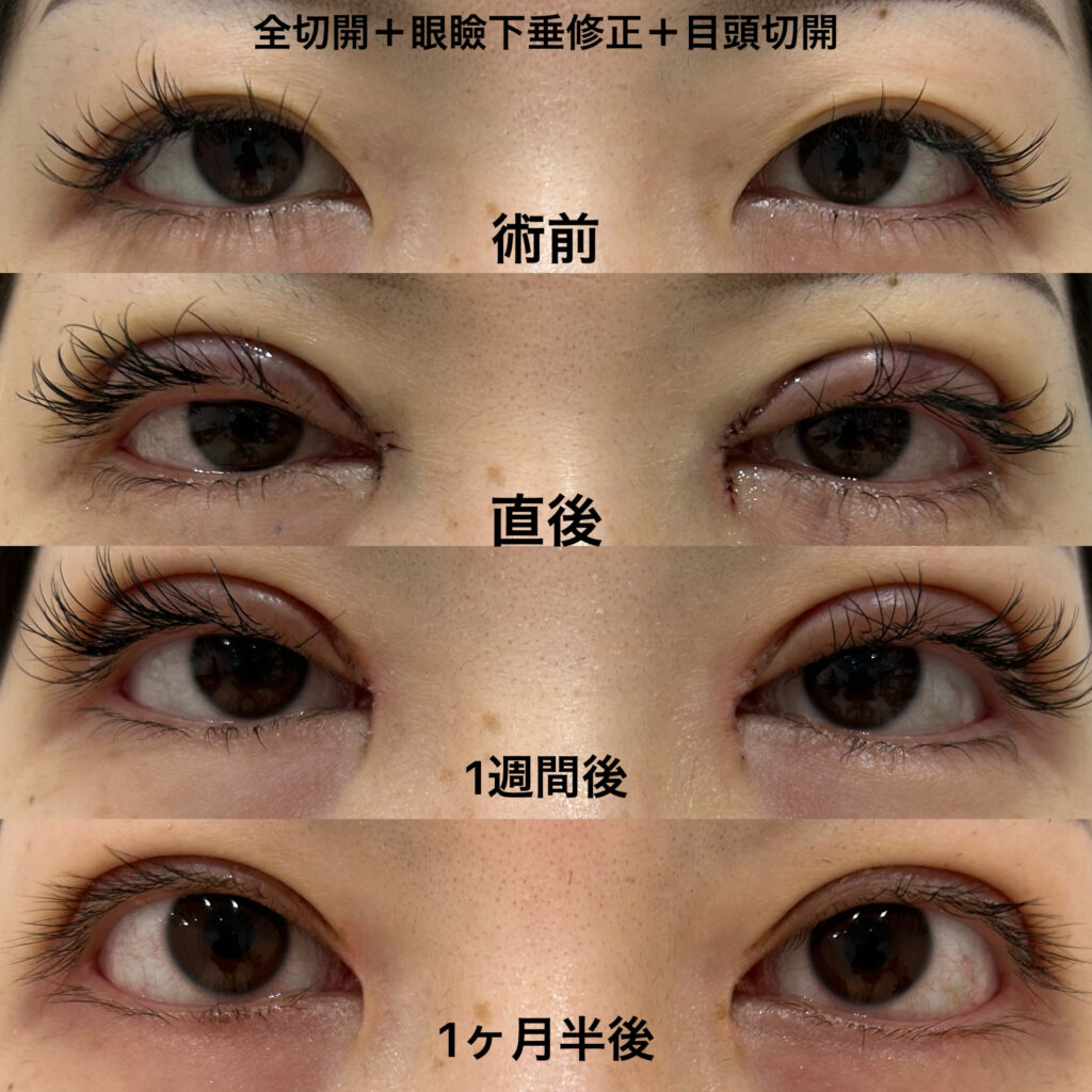 【症例19】全切開+眼瞼下垂修正+目頭切開