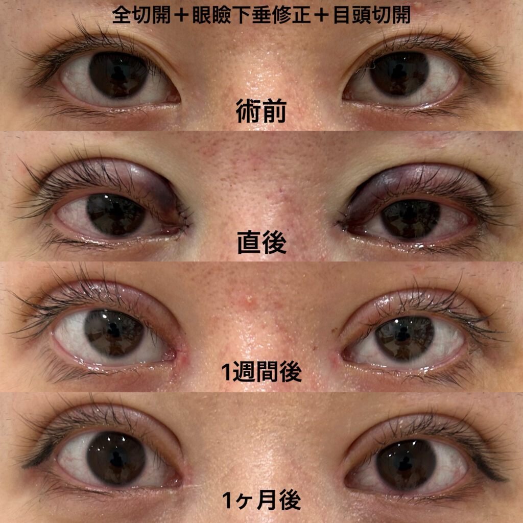 【症例23】全切開+眼瞼下垂修正+目頭切開+目尻切開+クマ取り