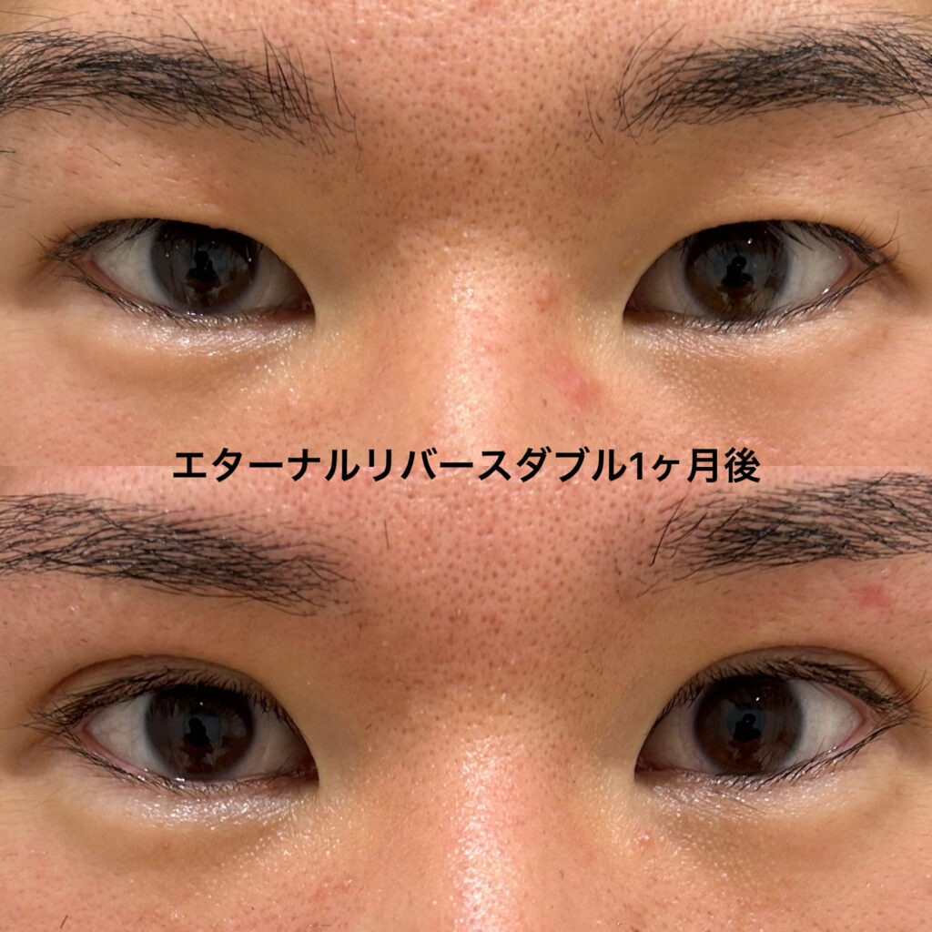 平行二重ご希望でした。エターナル法はデザインに正確なライン形成を得意とする独自に開発した方法です。目頭切開と合わせてこのように鮮やかな二重ラインの形成が可能になります。